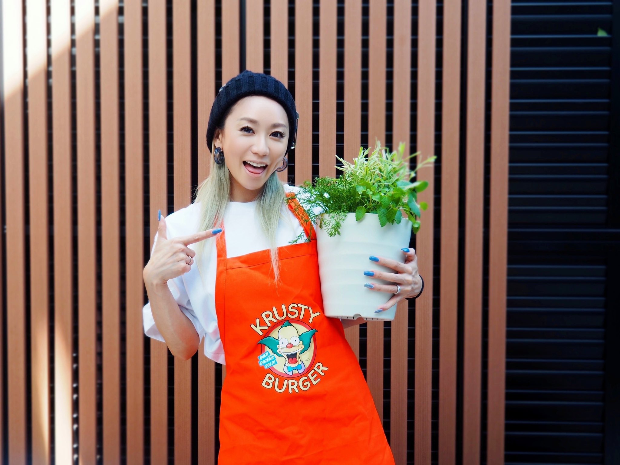 別の日には、エプロンを身に着けハーブの苗を植え付ける姿も。エプロン姿で真剣な表情をされている倖田さんは、非常に新鮮ですね。歌っているときとは全く違った雰囲気ですが、植物を触る姿も様になるところは流石の一言です。