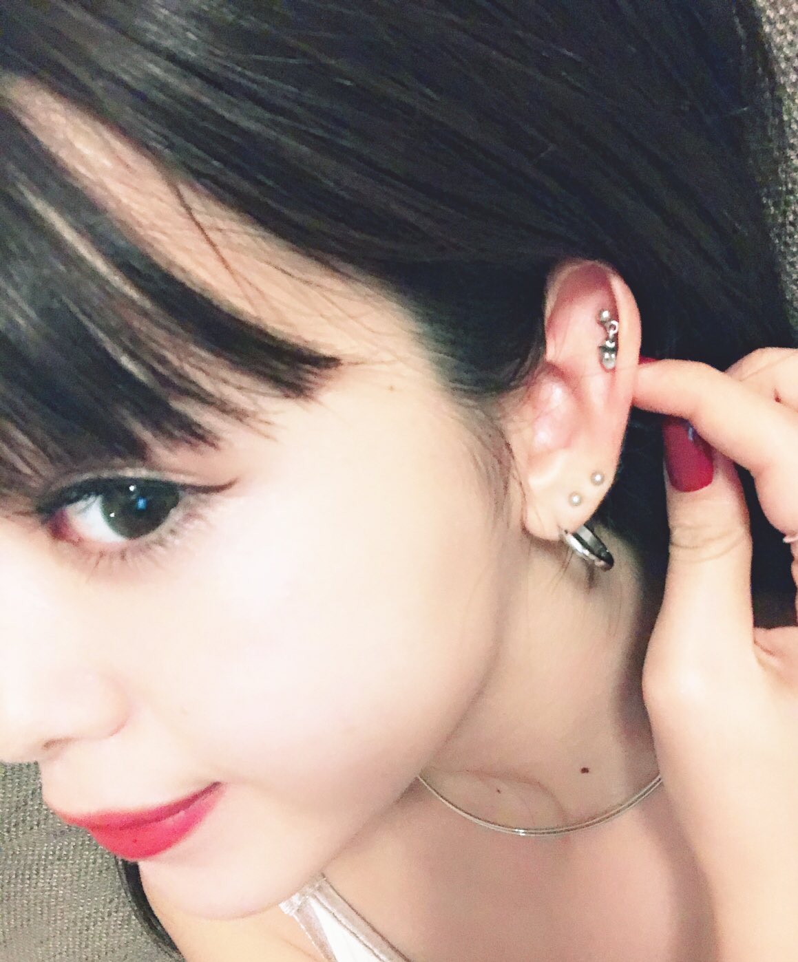女性アイドルグループ・でんぱ組.incの元メンバー、最上もがさん。最上もがさんはロブやヘリックスなど、両耳合わせて12箇所にピアスが開いているそうです。金髪のショートカットにたくさんのピアスがお似合いですね!